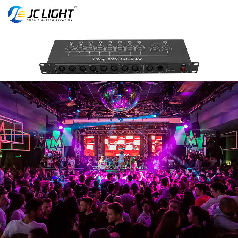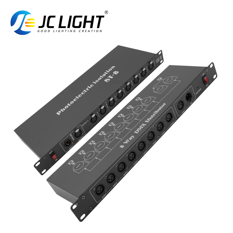 There are 2 in 6 out, extending the signal transmission distance, improving the ability of the device to access the data bus, protecting the number of lighting control panels. DMX512 output interface, isolating the fault scene, improving safe operation. reliability of digital lighting control systems