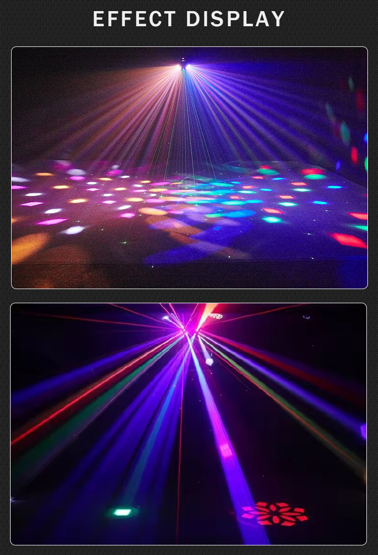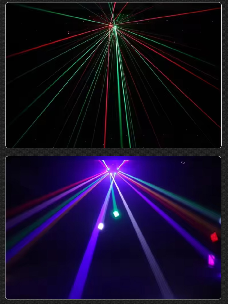 LASER: 1*100MW red laser+1*50MW green laser+1*80MW blue laser