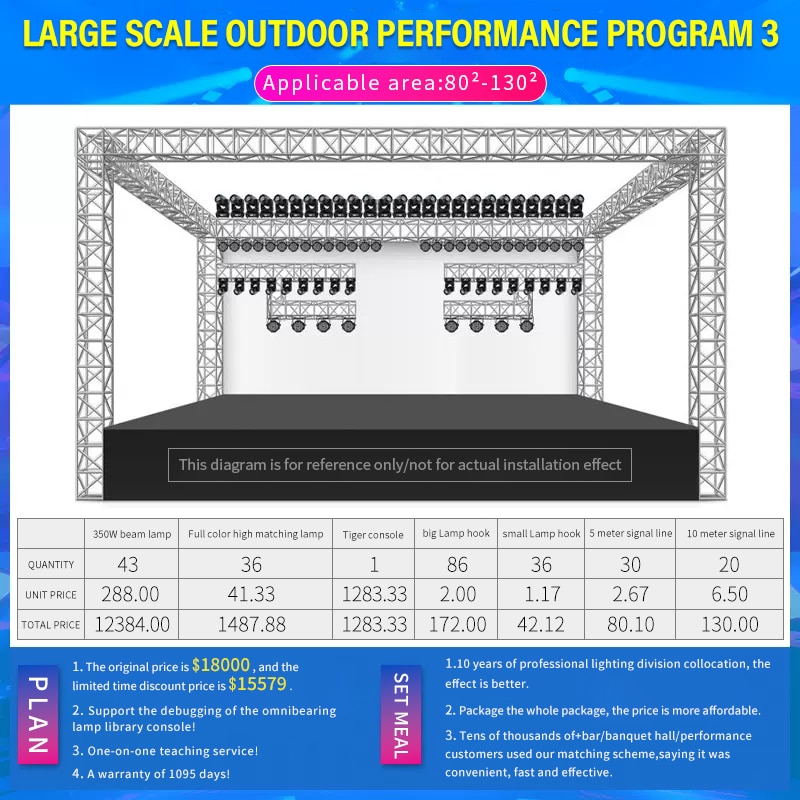 Additional accessories: The lighting console, signal amplifier, and power box are matched according to the number of lights. If the customer has a limited budget, you can use non-waterproof lights and a rain cover.