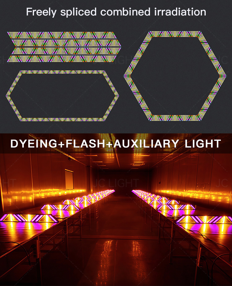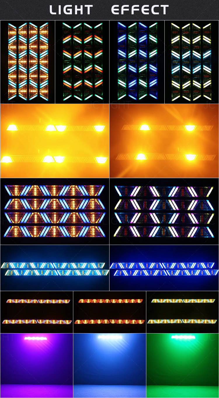 Power: 5x60W amber COB beads,120pcs 0.3W RGB 3in1 5050 beads