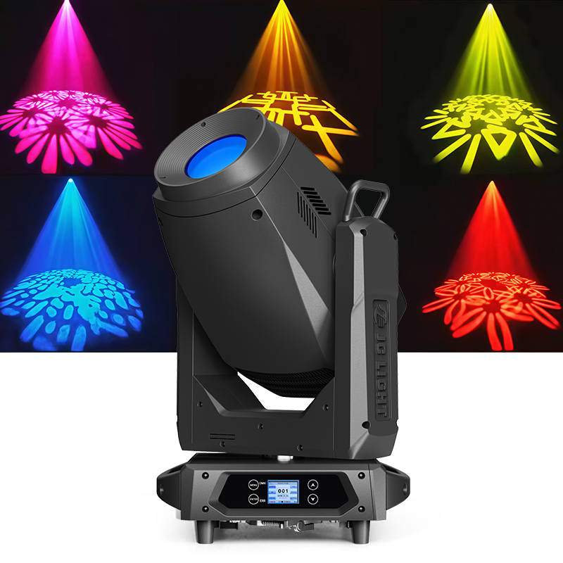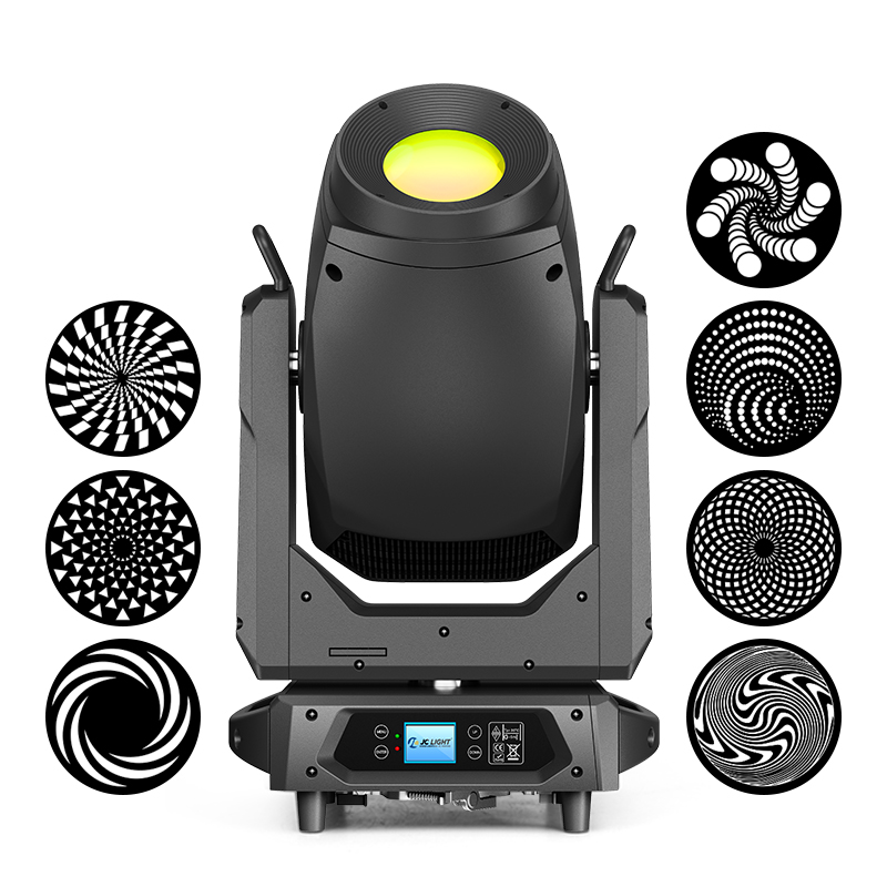 Rotating Gobo wheel: 7 pluggable rotating Gobo + white, with jitter and arbitrary positioning function;