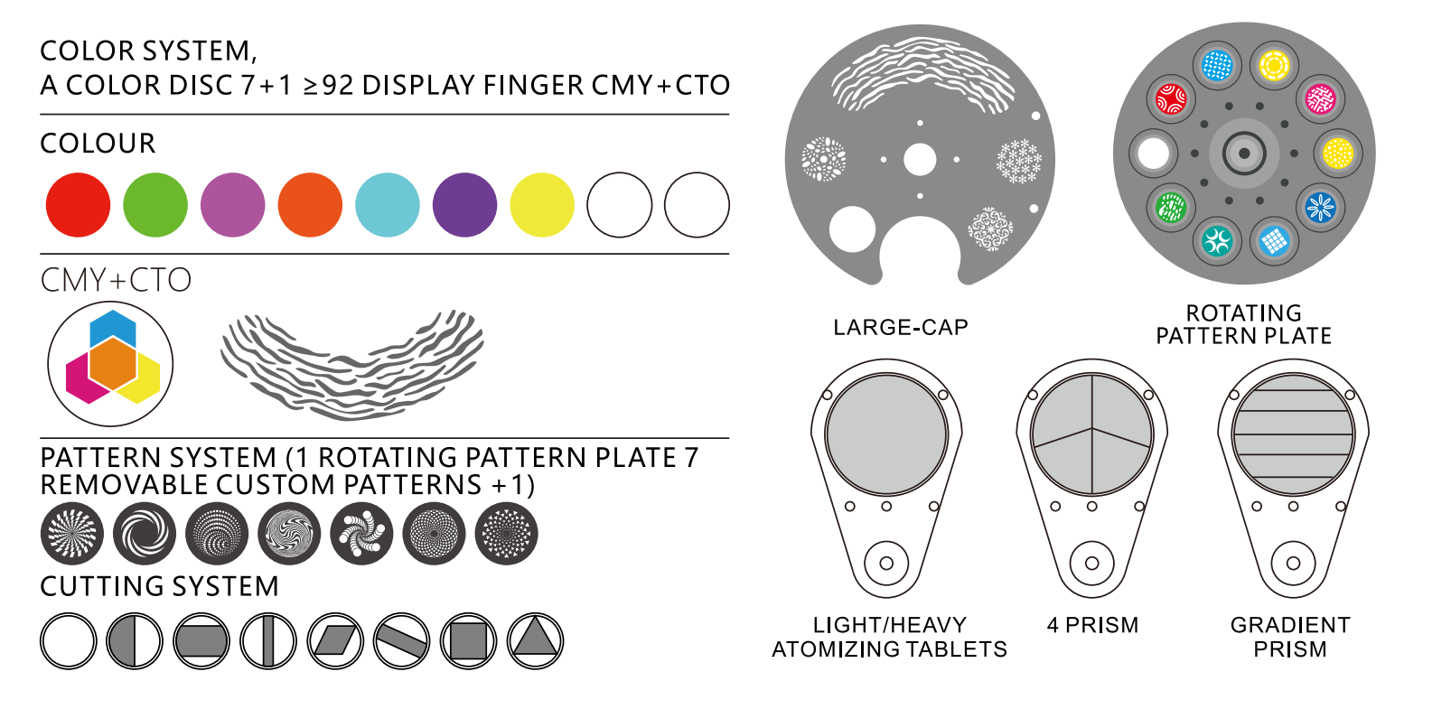 Color system: CMY+CTO color mixing system