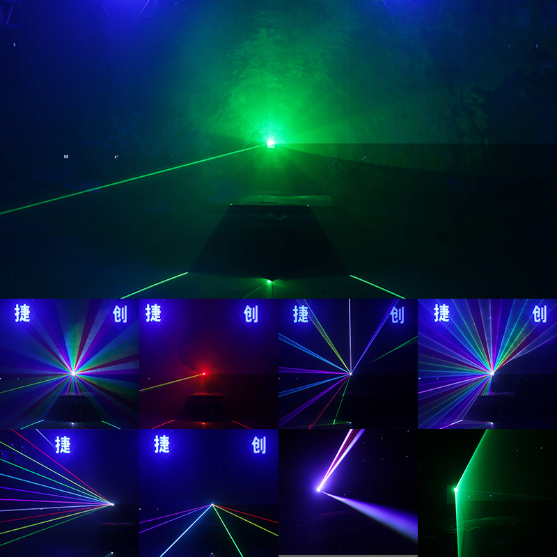 Laser pattern: Full-color animation laser, using high speed vibroscope scanning speed, includes stroboscopic, rotation, tumbling, moving, stretching, scaling, gradually drawing, speed, color and other effects. The machine has its own pattern size and reverse phase adjustment, built-in 128 laser animation patterns.