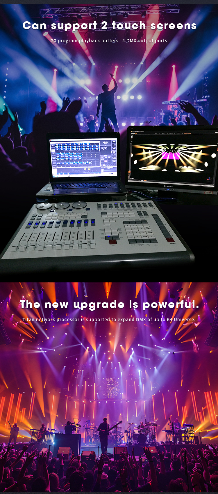 ·DMX or MIDI support extended control panel, Max up to 2 touch screens