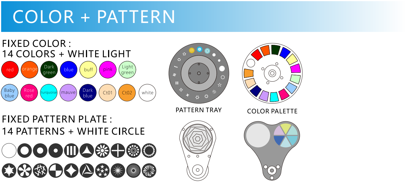 Prism: double prism, 8 prism, 24 prism, which can be overlay to acheive 12 prism effects.
