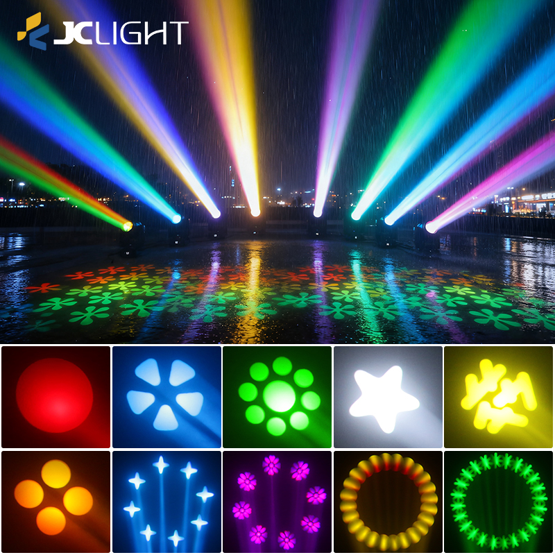 Gobo wheel: 14 fixed gobo + open, 9 rotating gobo (customized logo, Patterns can be infinite zoom in and out linearly)